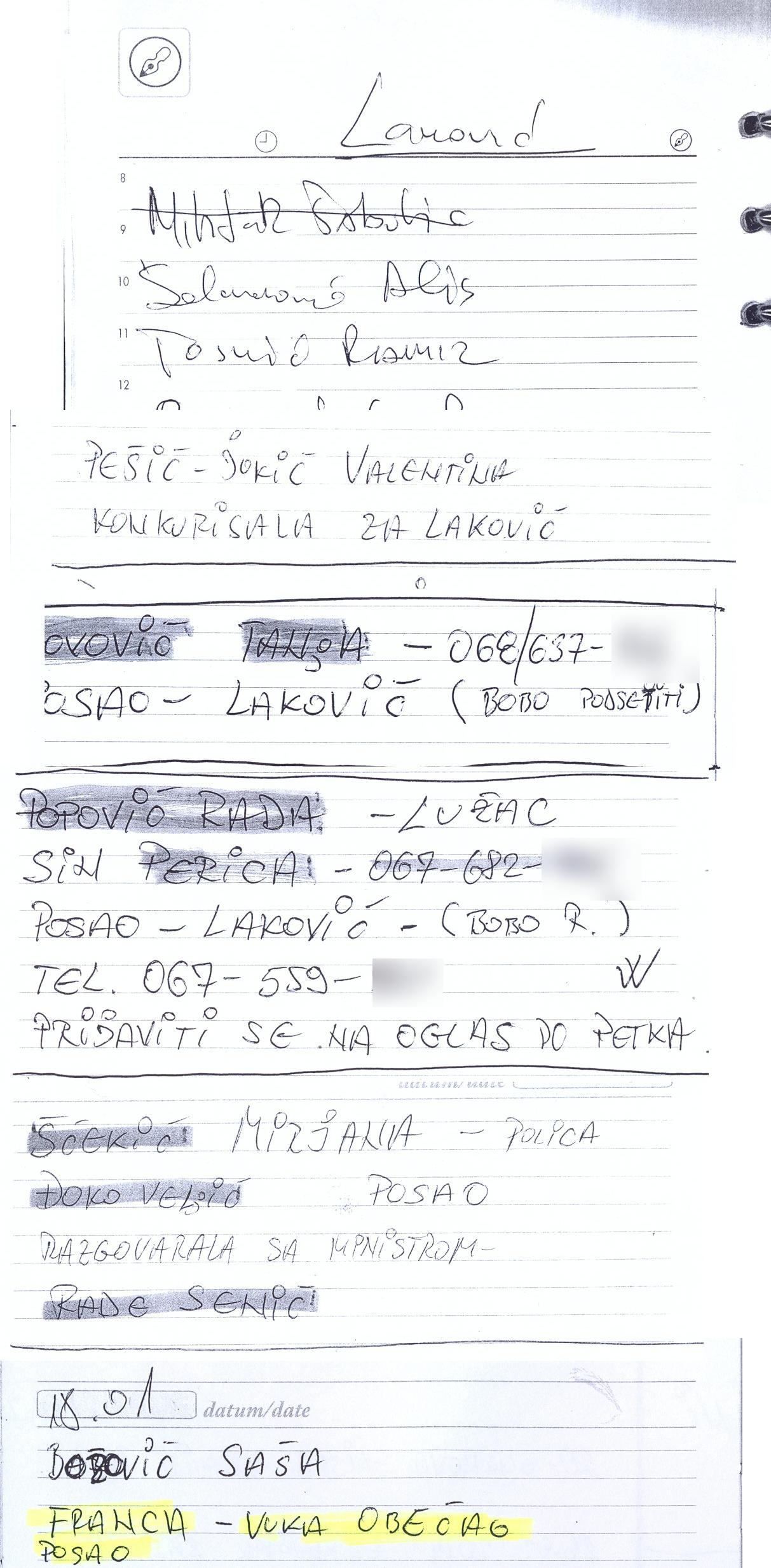 Najčešće pominjana kompanija je lanac supermarketa “Laković” gdje se zaposljenje nudilo pretežno uz asistenciju ministra zdravlja Miodraga (Boba) Radunovića. Tako su aktivisti DPS-a za njhovu sugrađanku Radu Popović notirali “posao – Laković”, dok je kao posebna napomena u zagradi navedeno “Bobo R.” Takođe i za jednju Tanju se navodi da je u vezi sa poslom u “Laković” potrebno podsjetiti “Boba”.