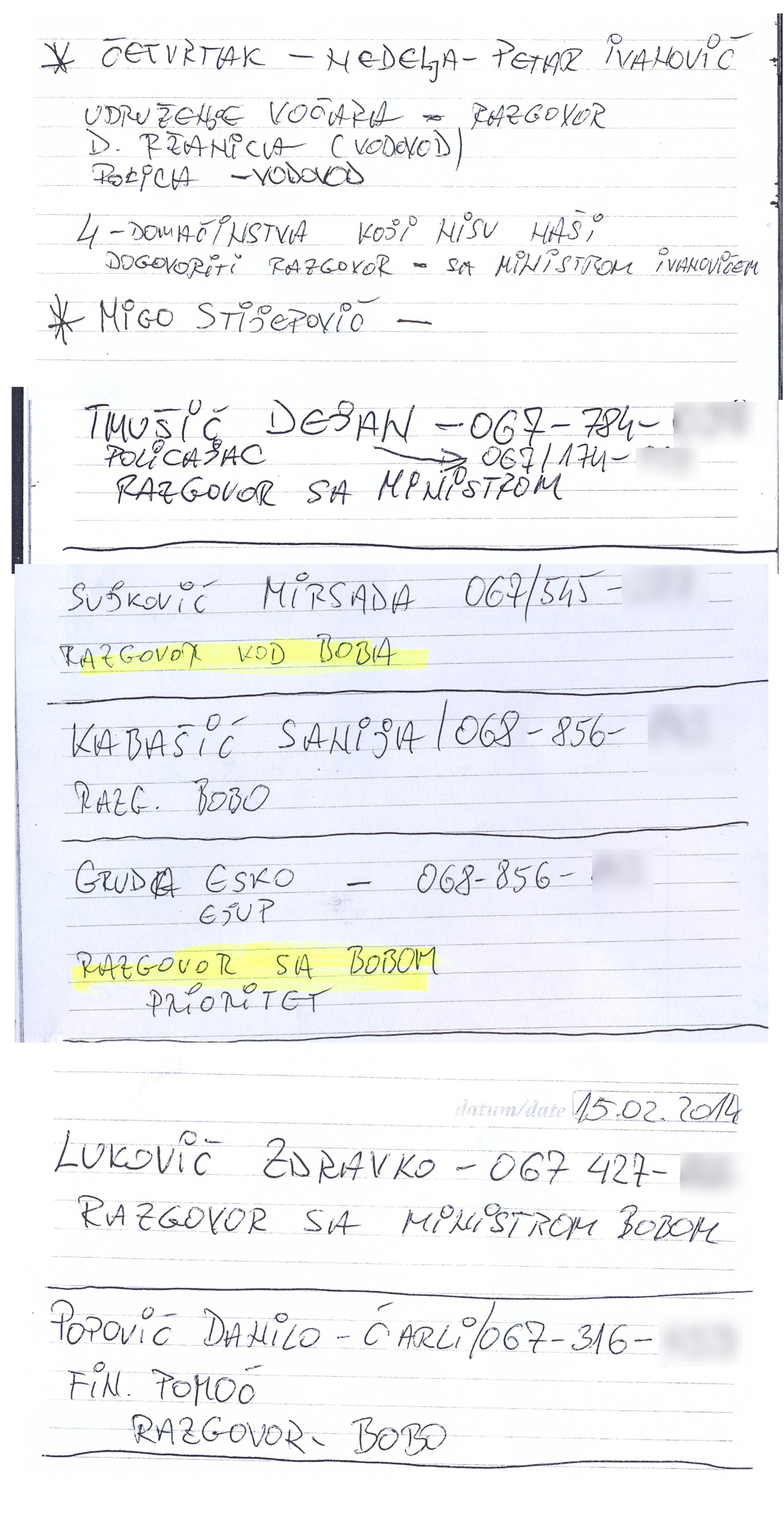 U dokumentaciji se takođe navodi da je potrebno organizovati sastanak sa ministrom Ivanovićem za četiri domaćinstva koja ne glasaju za DPS, navjerovatnije kako bi ih ministar ubijedio u suprotno.