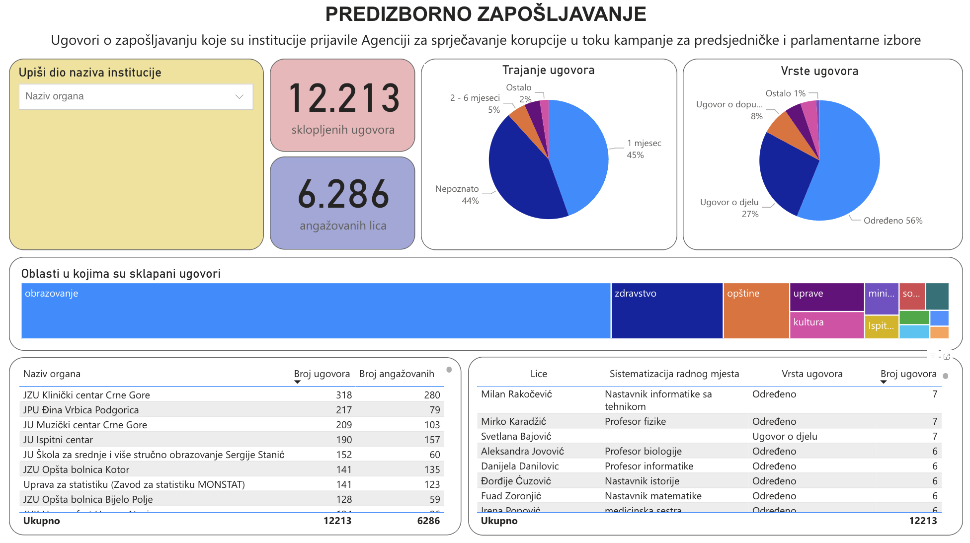 Tokom kampanje za ovogodišnje predsjedničke i parlamentarne izbore, u državnoj upravi je radni angažman pronašlo blizu 6300 lica, a ukupan broj ugovora koji je zaključen