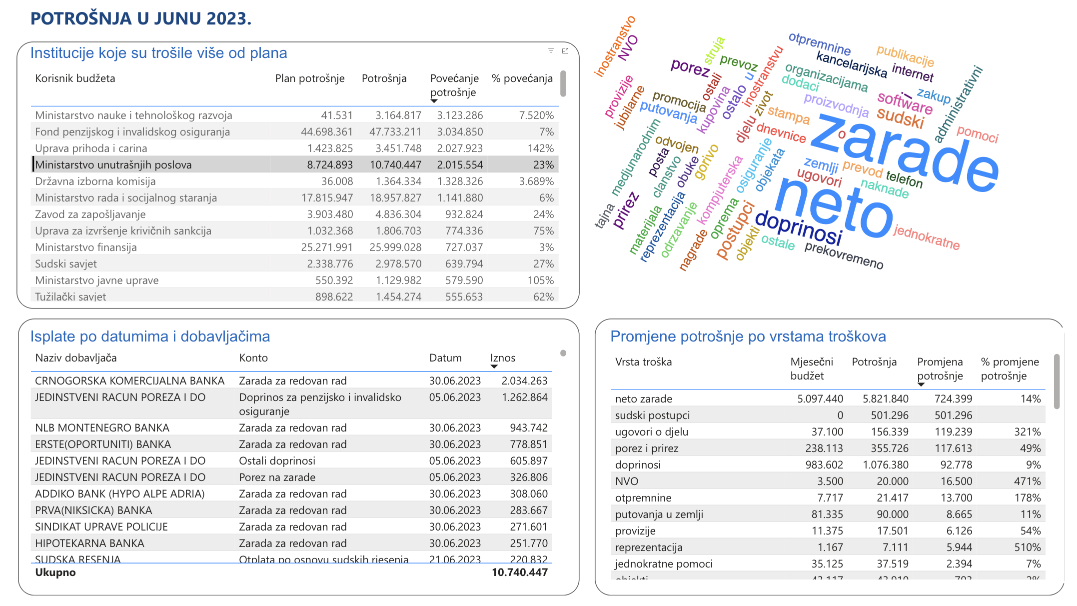 Ministarstvo unutrašnjih poslova, Uprava za prihoda i carina, Fond PIO, Uprava za izvršenje krivičnih sankcija, te Ministarstvo nauke i tehnološkog razvoja, neke su od državnih