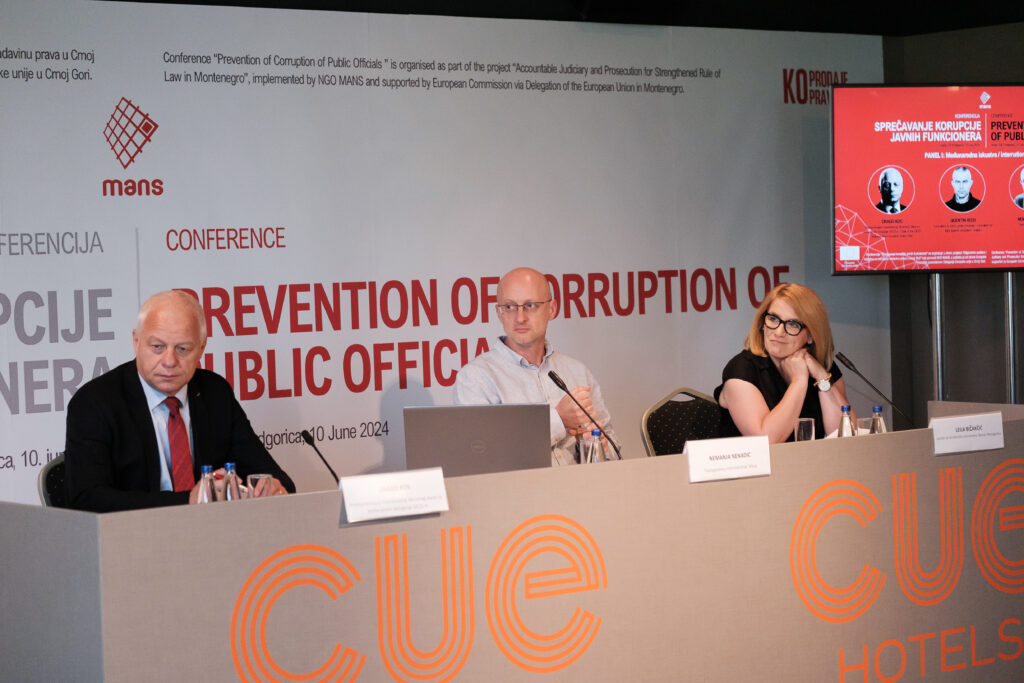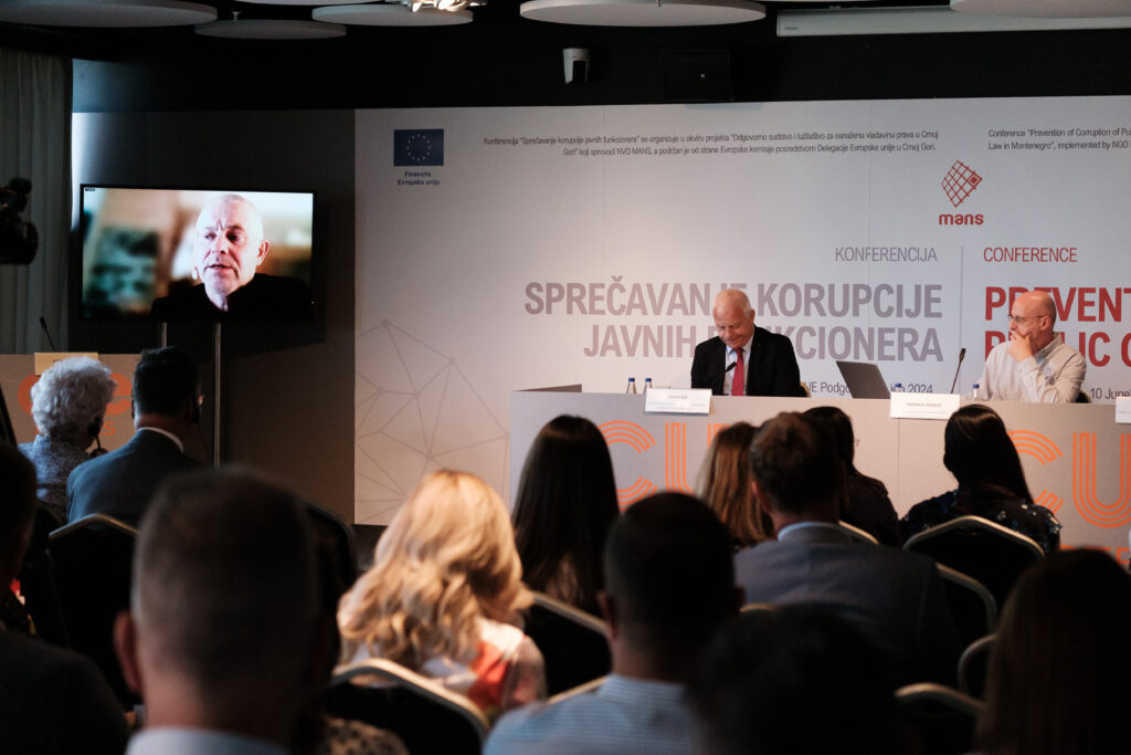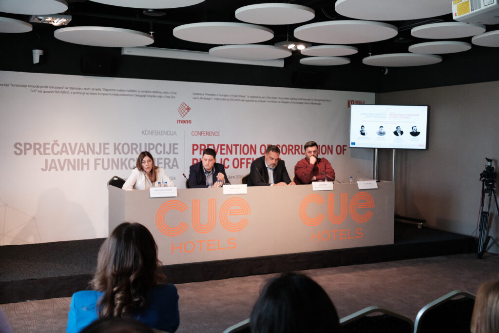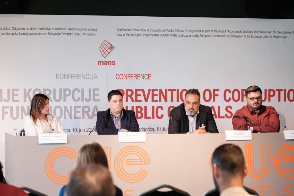 U sklopu projekta “Odgovorno pravosuđe za osnaženu vladavinu prava u Crnoj Gori”, MANS je 10. juna 2024. godine organizovao konferenciju “Sprečavanje korupcije javnih funkcionera”. Projekat koji sprovodi NVO MANS podržan je od strane Evropske unije posredstvom Delegacije u Crnoj Gori.