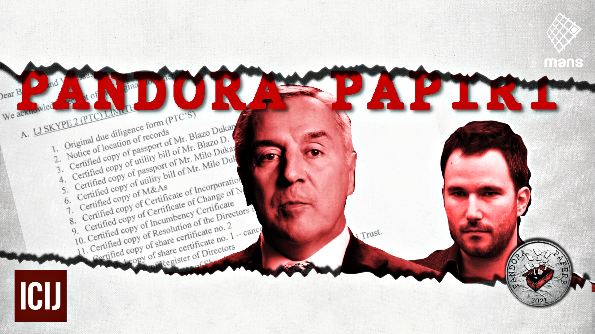 Do tih podataka došao je Istraživački centar MANS-a kroz globalnu istragu o offshore poslovima pod nazivom “Pandora papiri” (Pandora Papers) koju je vodio Međunarodni konzorcijum istraživačkih novinara (ICIJ) sa partnerima iz 117 zemalja. Do sada najveća baza procurjelih podataka sadrži skoro 12 miliona dokumenata iz 14 offshore agencija. Jedna od njih je ALCOGAL, vodeća advokatska kancelarija u Panami sa predstavništvima na svim poznatijim offshore destinacijama, uključujući Britanska djevičanska ostrva, preko kojih su vođeni poslovi porodice Đukanović.
