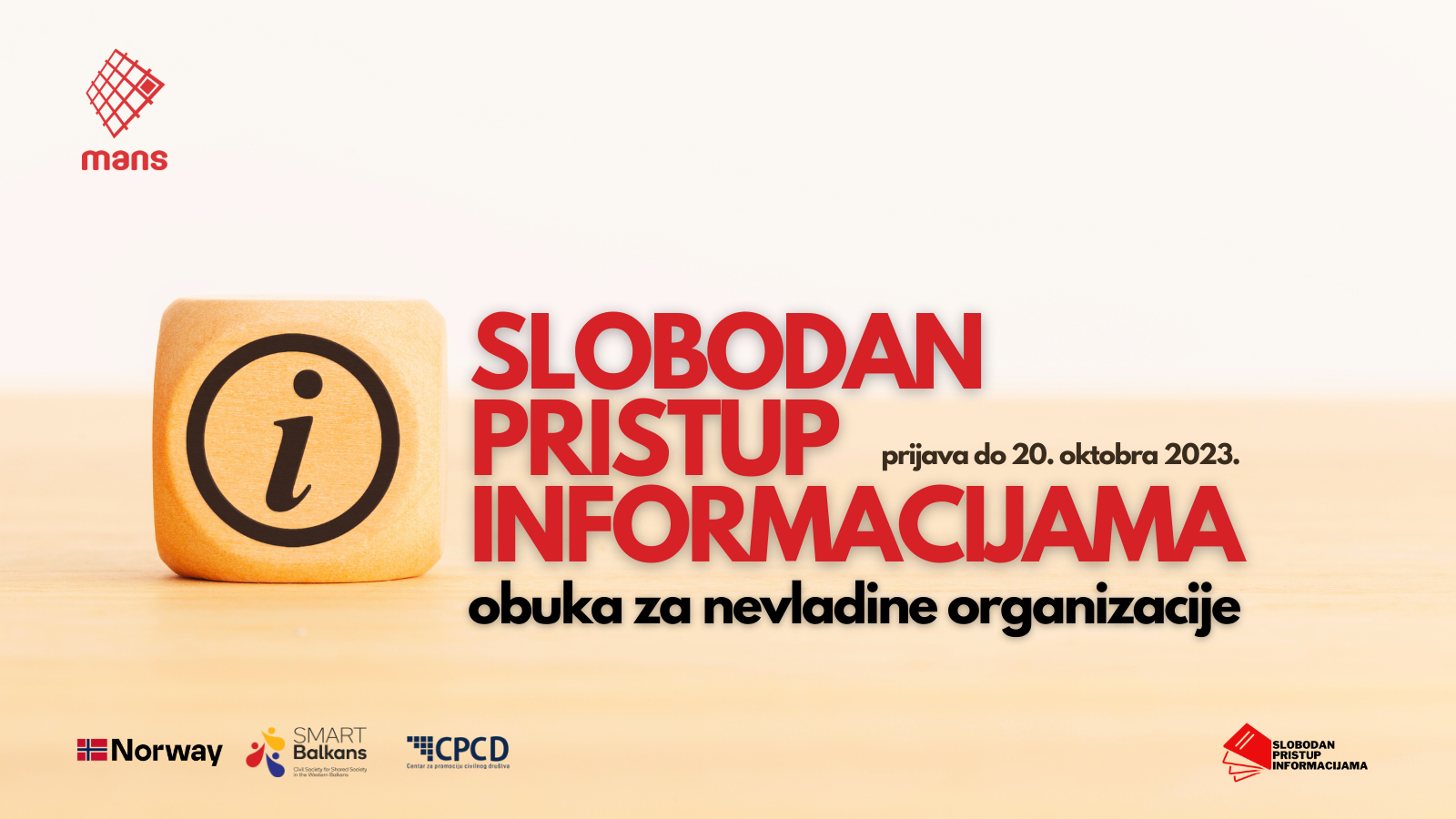 Obuke iz slobodnog pristupa informacijama organizuju se u okviru projekta podržanog kroz regionalnu inicijativu SMART Balkan – Civilno društvo za povezan Zapadni Balkan, koju implementira Centar za promociju civilnog društva (CPCD), Centar za istraživanje i kreiranje politika (Center for Research and Policy Making – CRPM) i Institut za demokratiju i medijaciju (Institute for Democracy and Mediation – IDM) a finansijski podržava Ministarstvo vanjskih poslova Kraljevine Norveške.