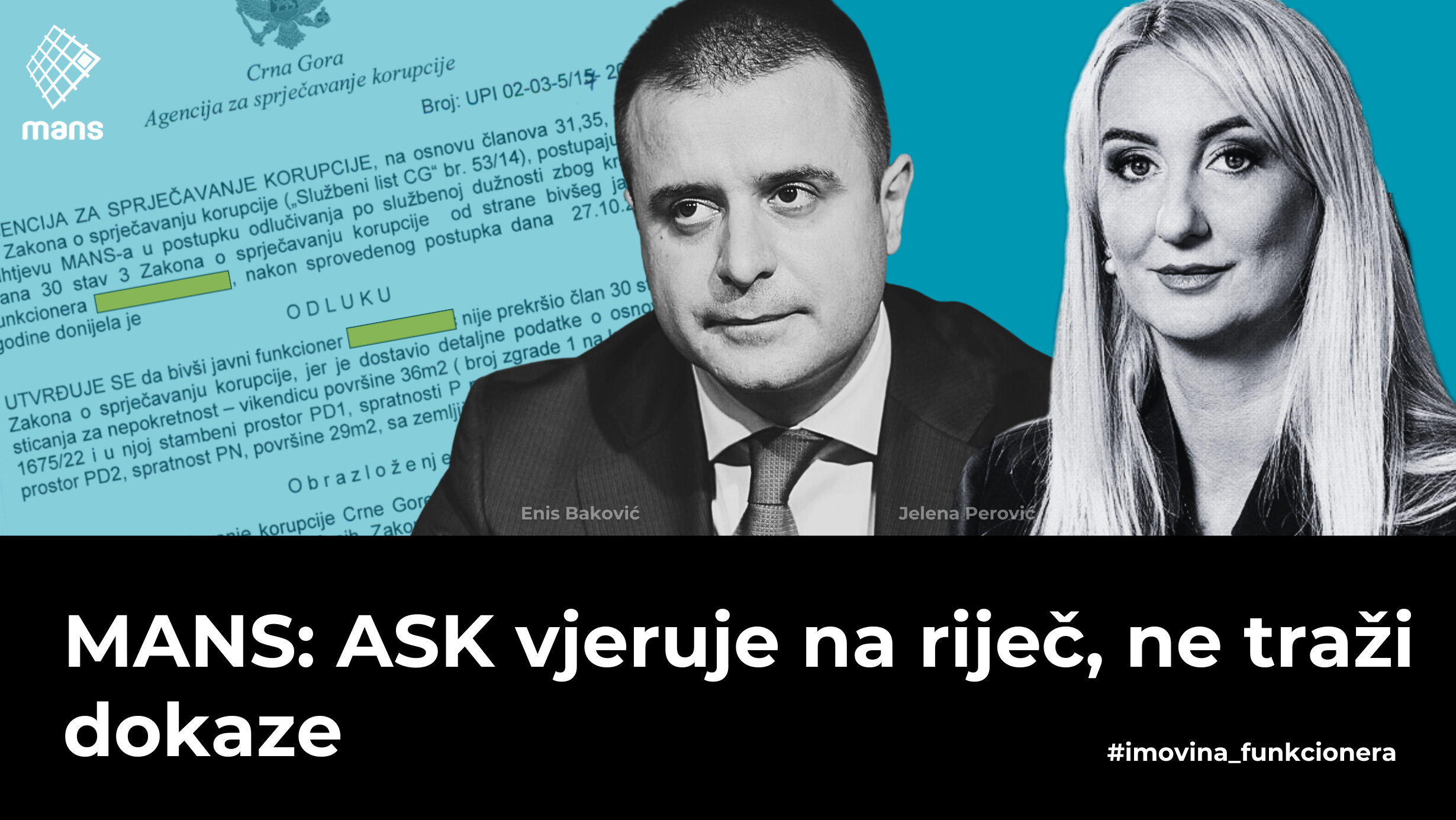 Agencija za sprječavanje korupcije (ASK) je juče objavila odluku po inicijativi koju je MANS podnio…