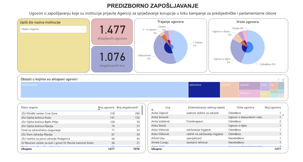 Ovoliki broj zaključenih ugovora o zapošljavanju u samo nekoliko mjeseci izbornih kampanja za predsjedničke i parlamentarne izbore svjedoči o potpunom odsustvu bilo kakve meritokratije, ali i kapaciteta nadležnih institucija da ograniče samovolju partija izvršne vlasti u namjeri da se zloupotrijebe državnih resursi.