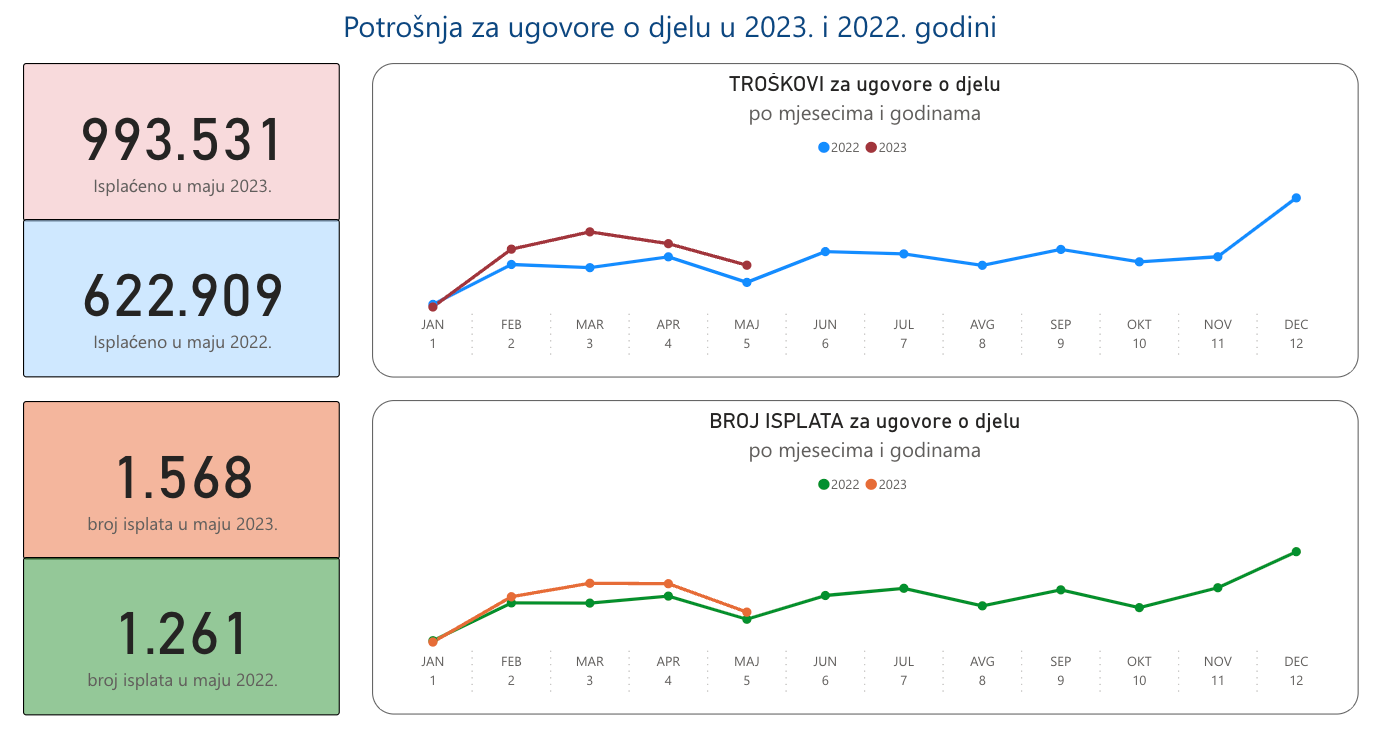 Detaljni podaci o isplatama po osnovu zaključenih ugovora o djelu je dostupan na https://www.cistakampanja.me/potrosnja-za-ugovore-o-djelu-u-2023-i-2022-godini-2/